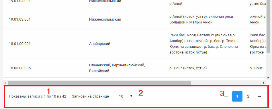 В нижней части реестров (таблиц/перечней) отображается инструмент «Страничный навигатор». Если записей в реестре больше, чем настроенное количество записей на страницу, например, больше 10-ти.
